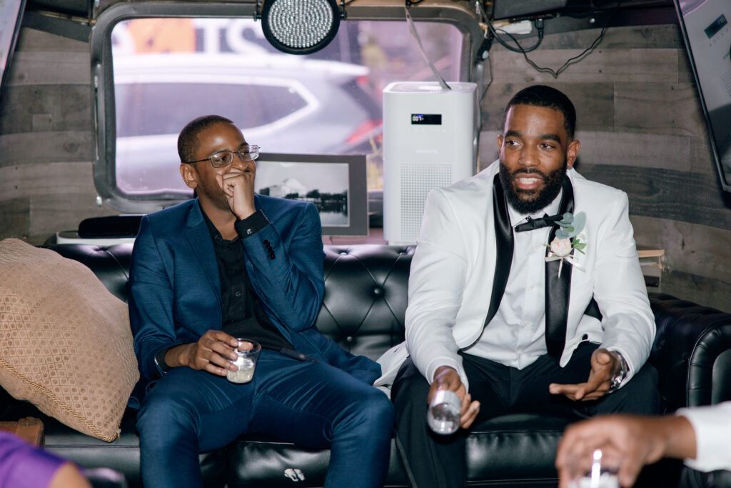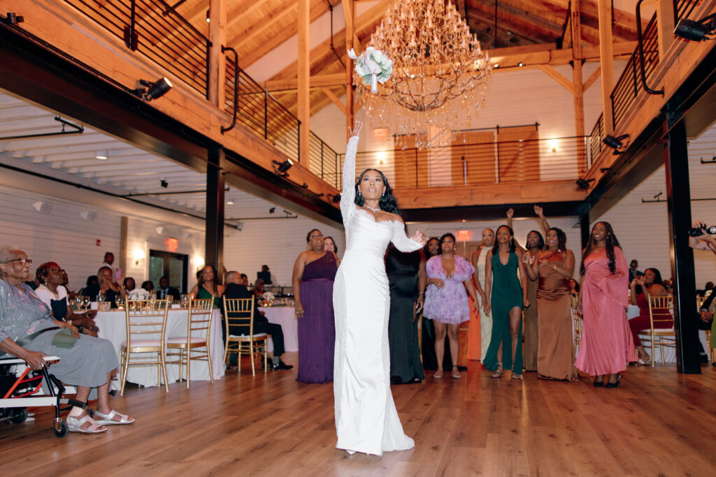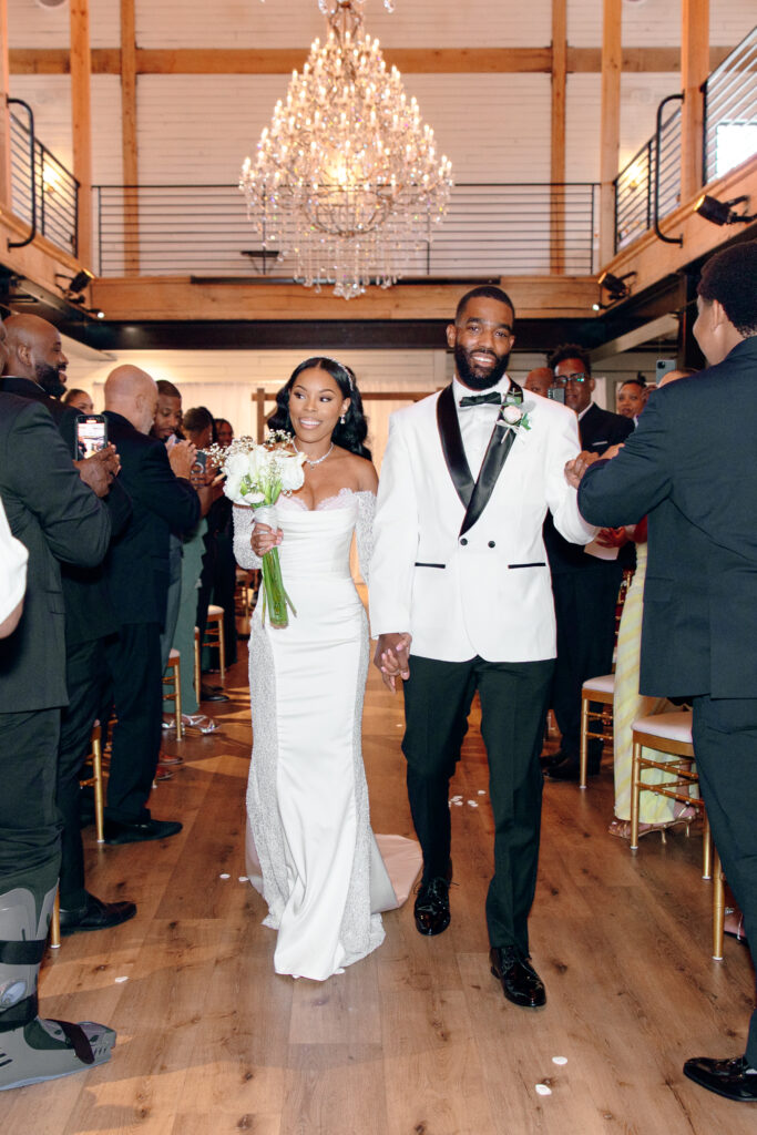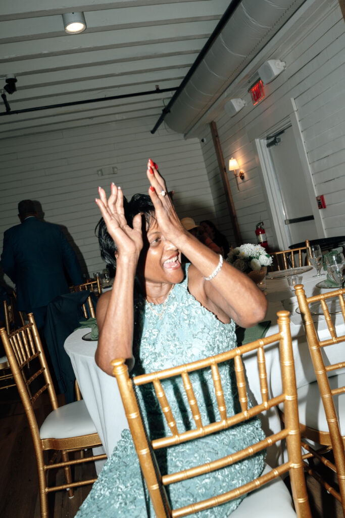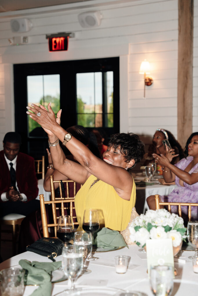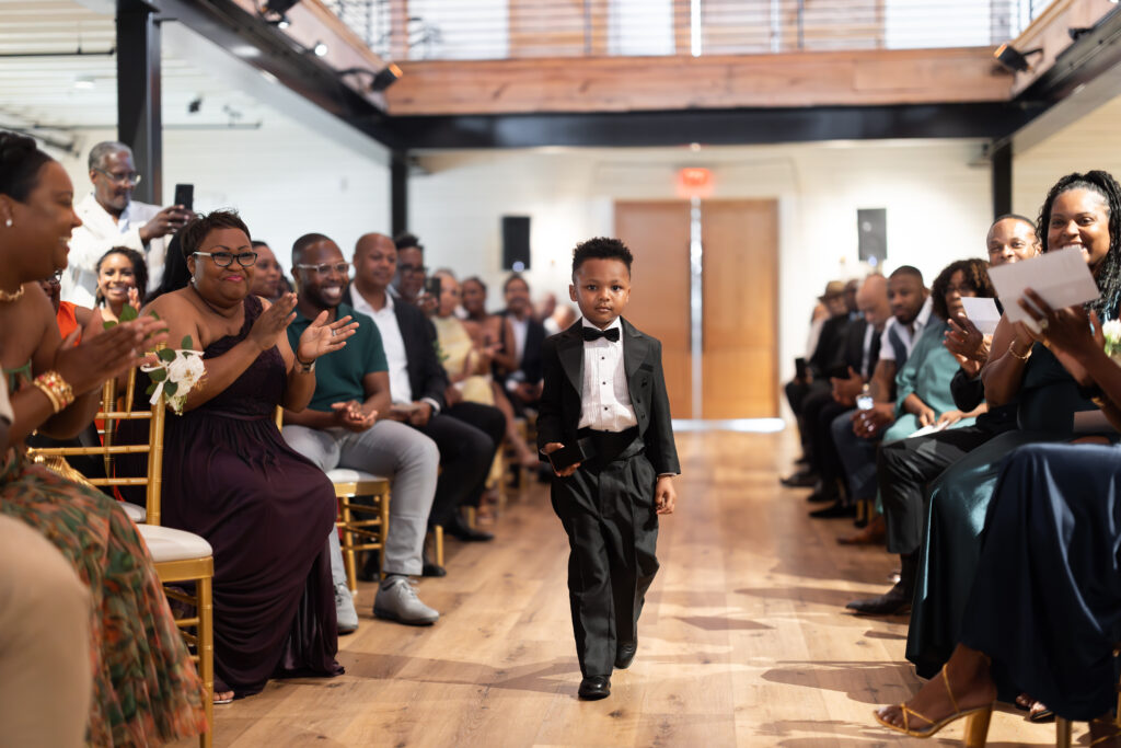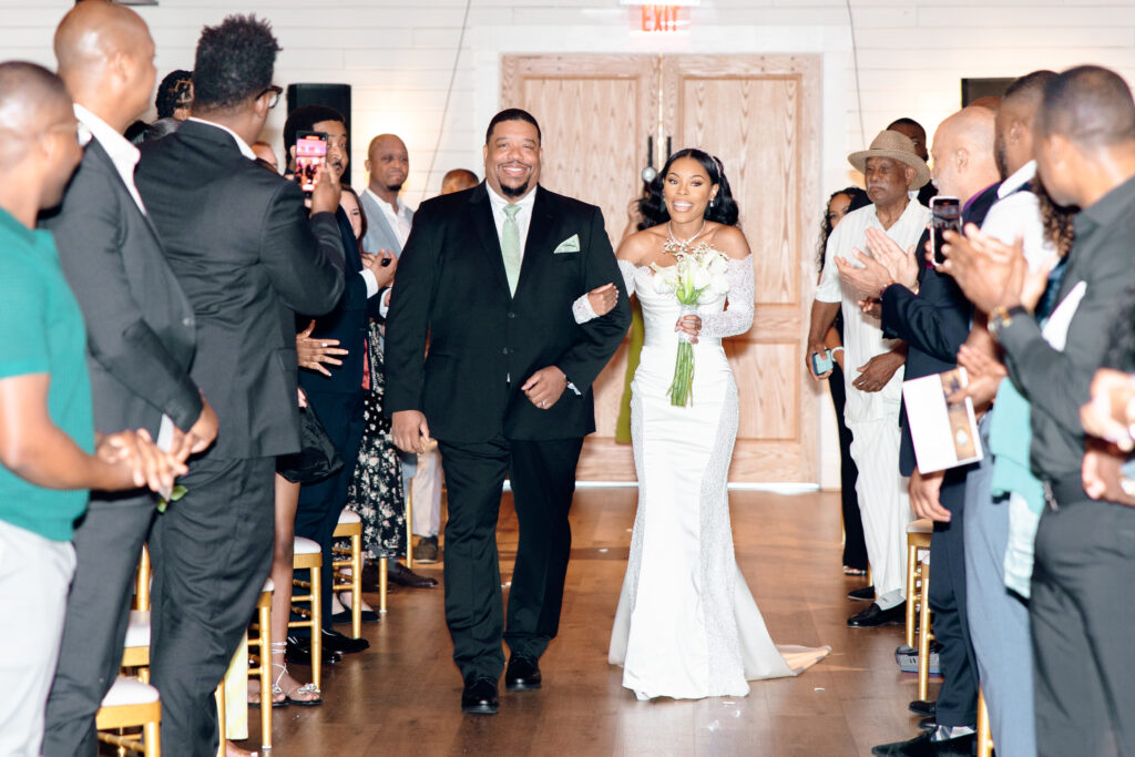 Then, the energy shifted in the best way. Guests filled the ceremony space, music swelled, and the couple made their entrance to cheers and happy tears. Their cocktail hour ran long by design, giving them time to actually be part of the celebration they worked so hard to create.