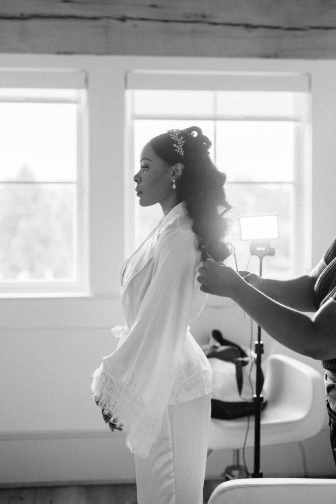 The morning began in the most peaceful way. The bride got ready surrounded only by her mother and sister in a stunning, light-filled suite. This is the kind of space that makes every detail feel elevated. Nearby the venue, the gentlemen gathered in the cigar lounge, swapping stories and laughter.