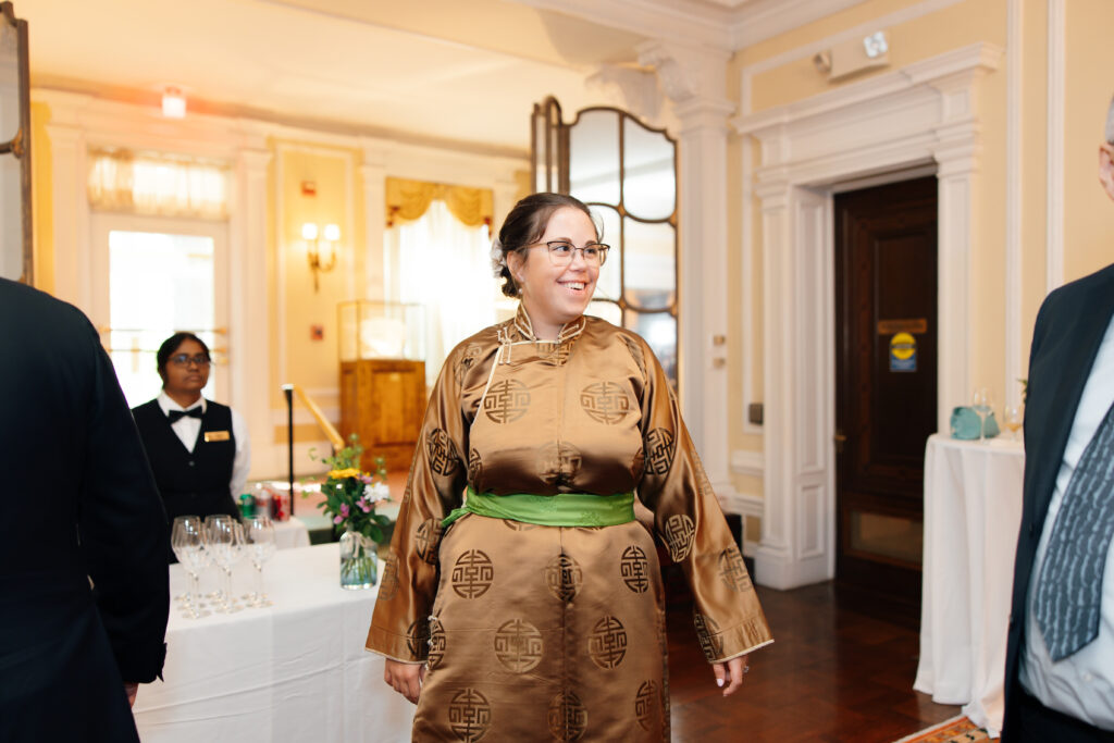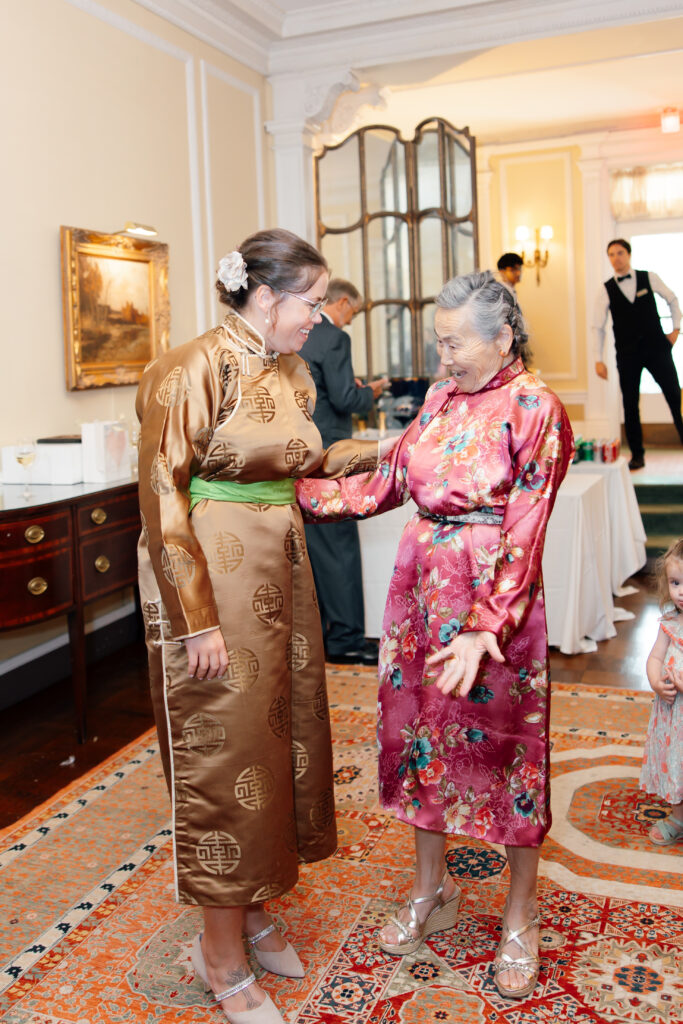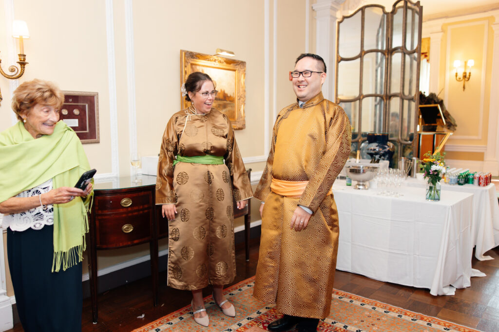 The couple kept things intimate, inviting only their closest family and friends, and even made sure to include the kids. That choice set such a fun, easygoing tone for the day. Between heartfelt toasts and spontaneous group photos out in the garden, it felt like everyone could just enjoy being together. The couple even brought out birthday cake to celebrate some recent birthdays! And during the ceremony, they incorporated Mongolian cultural elements in thoughtful ways, adding meaning and personality to their celebration without making it feel overly formal.